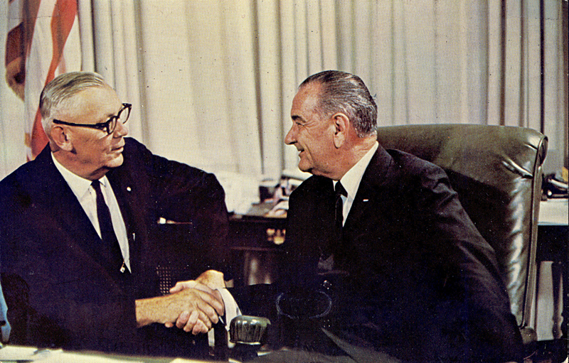 Johnson was originally in the shoe business in Manning - a business which he didn't particularly like. Hansen, a good friend, needed someone in his office and asked Johnson in 1954 to work for a few months. He remained.