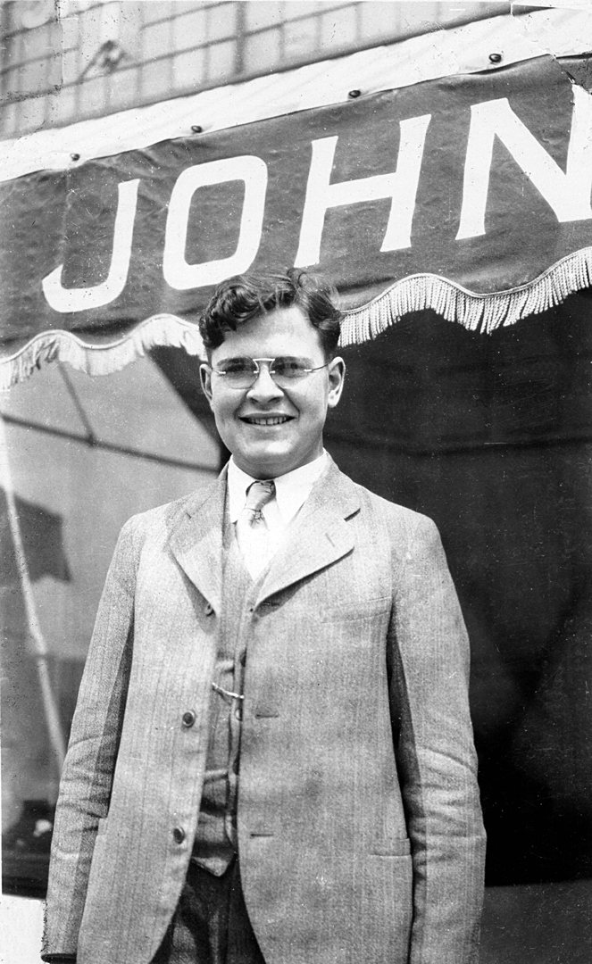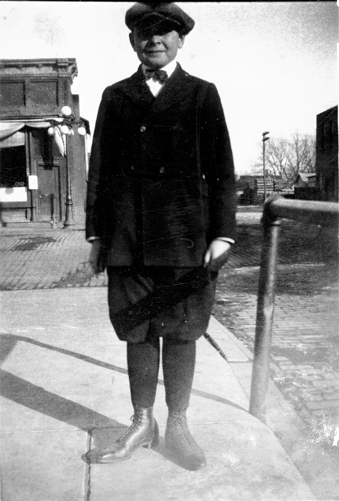 "Bud" Clifford Manning Johnson 1926 in front of his dad Chris Johnson's shoe store on Main Street