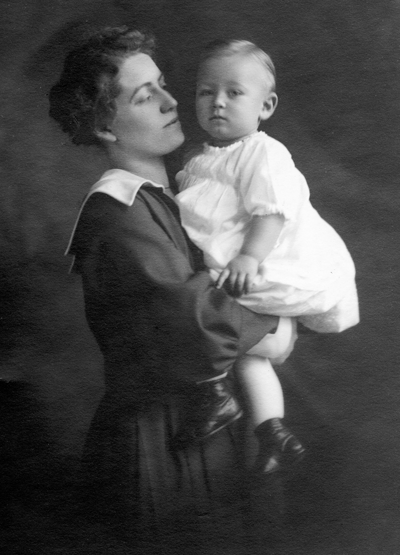 Marie (Moser) McGrath holding Ralph Harding McGrath 1 year 23 days - Christmas 1916