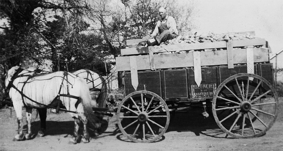 Herb Schroeder in wagon (father of Cleone & Wayne)