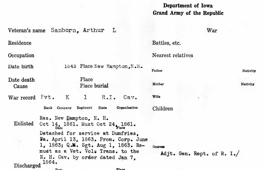 Here is the information Connie found for one of the three GAR Veterans I did not have in my database.