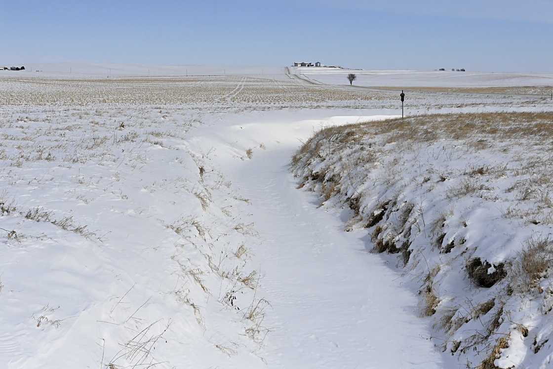 up to cover the first story. At that time our new windbreak trees were less than 5 feet tall, so they did no good to block the wind.