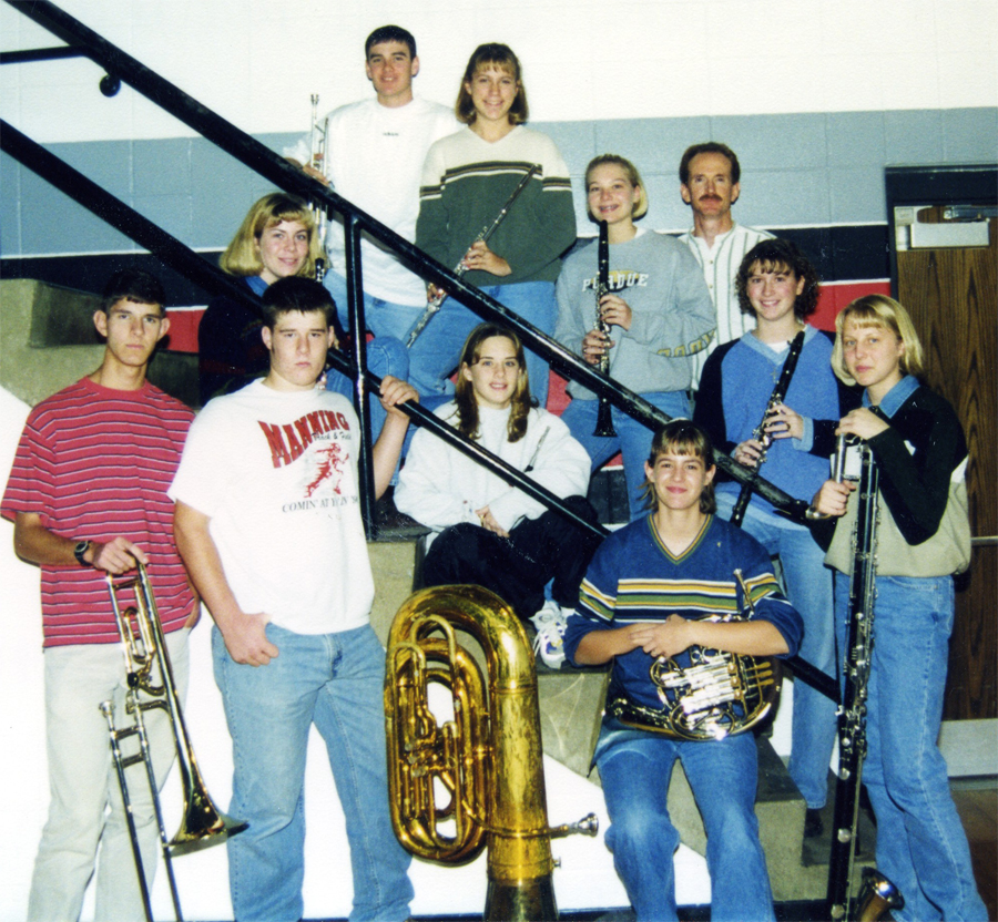 Jr. High and high school were very social times for me. My friends and I can still talk and laugh all night about the memories we have from those years. My 1978 Caprice saw a lot of miles during those years from the endless hours we spent driving around Manning or the countless trips we made to follow the Bulldogs take on neighboring teams. Gas was only $.88/gallon so the Caprice would drive forever and not cost me too much to fill up! I was involved in many activities during these years. I played volleyball all four years and enjoyed cheering on my team to the state tournament my senior year mostly from the sidelines, which will always be a highlight of my high school memories. I was also part of the student council. National Honor Society, and class officer all four years but I guess you could say I excelled in band. Some of my fondest memories of high school are centered around music. I went through high school having a love/hate relationship with band. I loved being in the band and the socializing that went with it but practicing was never a top priority for me. Somehow I managed to make it into the Iowa All-State band my junior and senior year as well as participate in many other honor bands around Western Iowa. Under the direction of Jeff Mount, Manning had nine All-State band musicians my junior year, and five my senior year, which is really unheard of, especially for a small 1A school! I graduated with 36 others in the MHS Class of 2000. I feel that the teachers in the Manning school system when I went through were top notch. I may have not known it then but when I got to college I realized what high expectations had been set at Manning High School when I was there. Thank you to all the teachers and administration who took the time to give us a quality education.