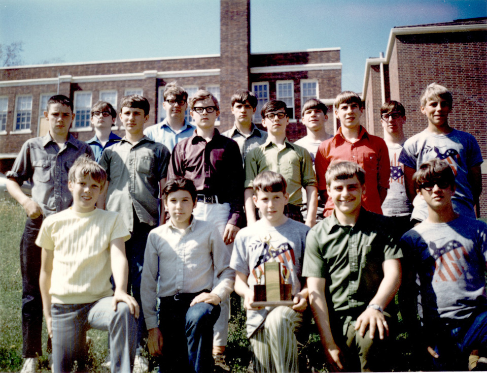 8th grade track team on the south side of the old high school along Highway 141