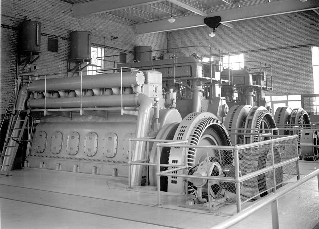 To keep up the increasing power demands, a number of additions have been made to the plant. In 1941, an addition was constructed by Herbert Hass, and a 750 horsepower, 500 kilowatt engine was purchased, at a total cost of $79,725. Another 880 horsepower, 610 kilowatt engine was added in 1948, at a cost of $116,000. The distribution sysem was updated in 1953, costing $18,000; a $25,095 cooling tower addition was made in 1955.