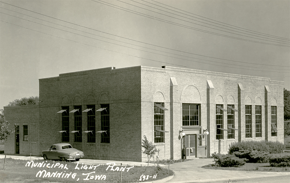 Cities across Iowa began receiving electricity in the late 1880s; when Carroll opened a plant in 1887, a number of Manning people made a plea for a plant here. The question was put to a vote in 1897, but lost, some say, due to the businessmen who refused to support it.