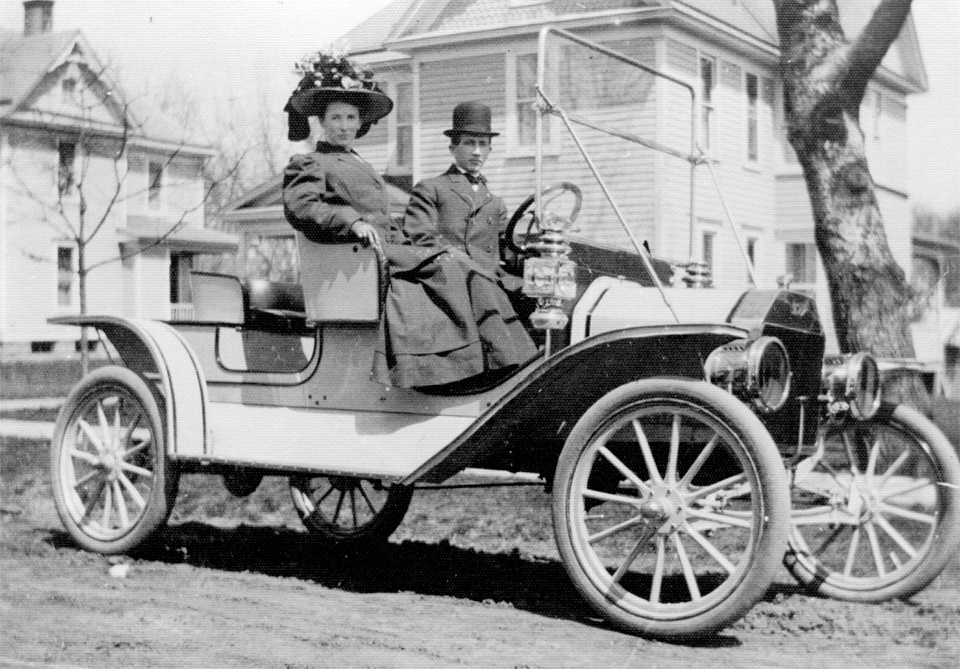 Frank & Ida (Hall) Kemp in their car “Horseless Carriage” in 1905.