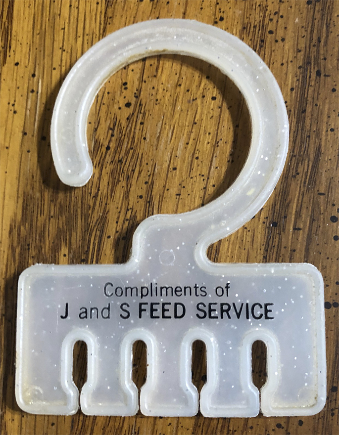 My cousin, Janice (Ahrendsen) has this paraphernalia that was given away by J&S Feed Service.