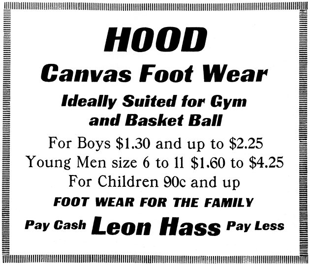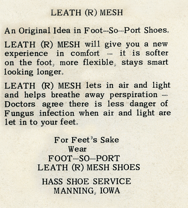 The Hass Shoe Service became the exclusive dealer of this area in Foot-so-Port shoes in 1950.