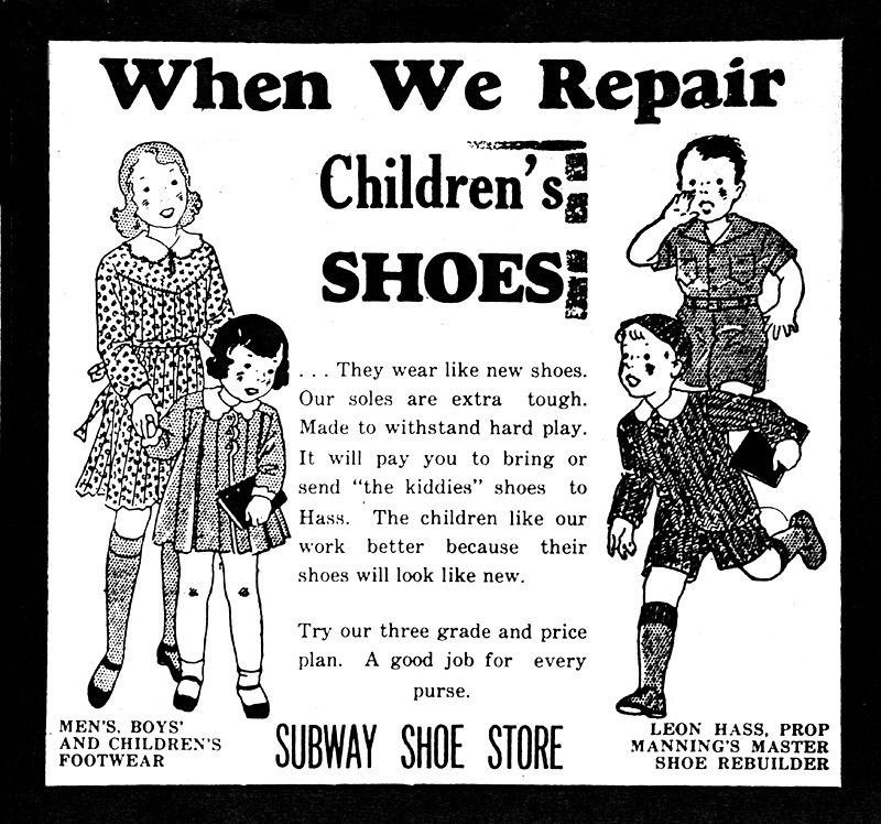 Leon G. Hass opened a shoe repair shop in Manning in 1919, moving to Manning after serving in World War I.