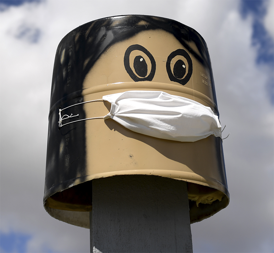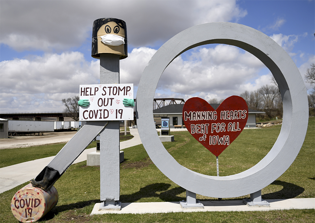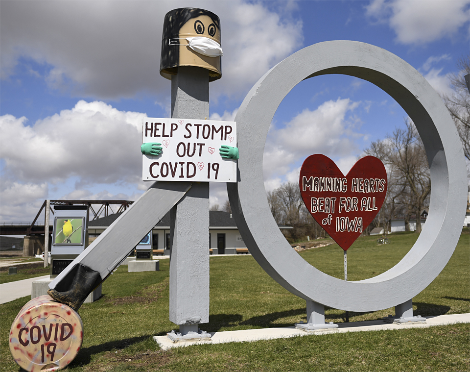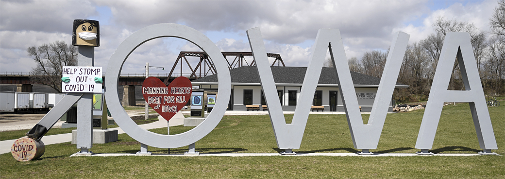 My suspicions were correct - it was Gene Steffes again, who thought up this ingenious idea about the recent pandemic message for the Iowa sculpture...