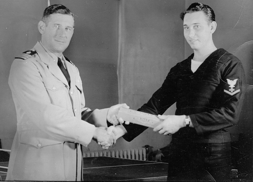 He was then transferred to the U.S. Naval Hospital at Mare Island, California in February of 1943, and spent the bulk of his military service there. His duties varied considerably during his tenure there, including ward duty; clerical duty in the hospital corps office, which had the responsibility of ensuring the hospital was staffed properly; and accompanying patients, both individually and in groups, who were being transferred to hospitals nearer their homes. He received several promotions while stationed at this hospital, achieving the rank of Pharmacist Mate Second Class (PhM 2/C).