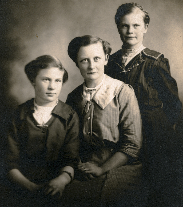Esther (Jensen) Popp with Marilyn on left, Ann (Frahm) Popp with Robert