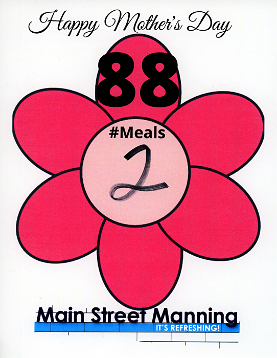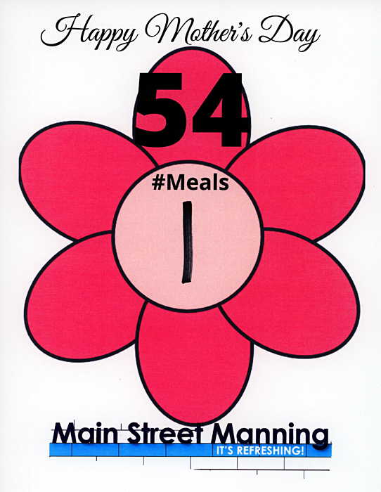 Jean continued, "As the Main Street Manning (MSM) volunteers began planning this event, they wanted to host an event that would promote the businesses in the MSM district by featuring available products and services and they wanted an event that would provide a nice meal for Mother's Day. Another goal was to promote community engagement and generosity while maintaining social distancing. Participants can drive up Main Street, stay in their cars, pick up a nice meal and a gift bag for Mom."