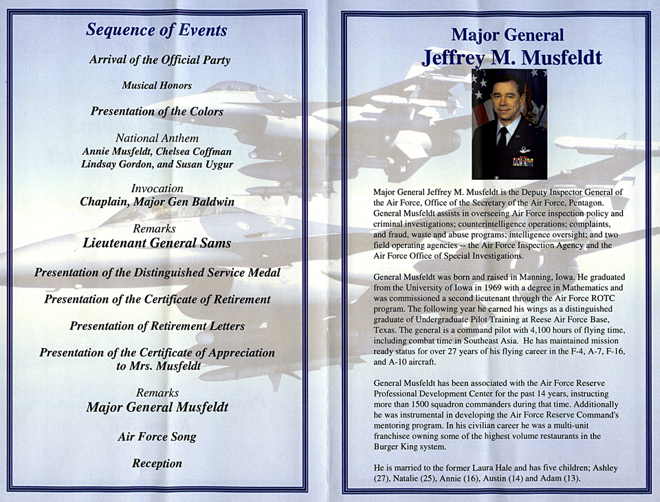 Major General Musfeldt was born and raised in Manning, Iowa graduating from