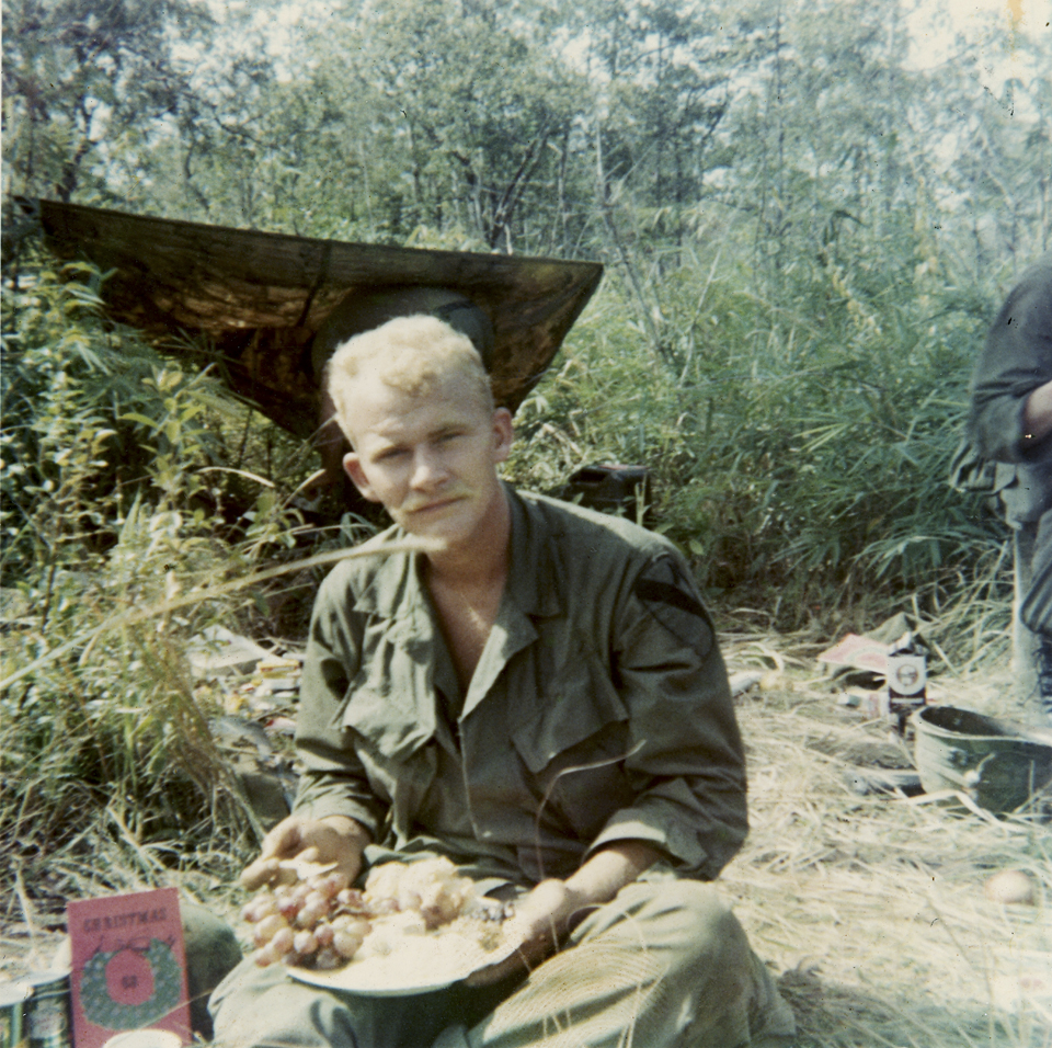 Now let's add the most critical piece of information - the meal was eaten out in the field (out on point) in Vietnam. The Christmas meal had to be flown in by helicopter, quickly dropped off, and