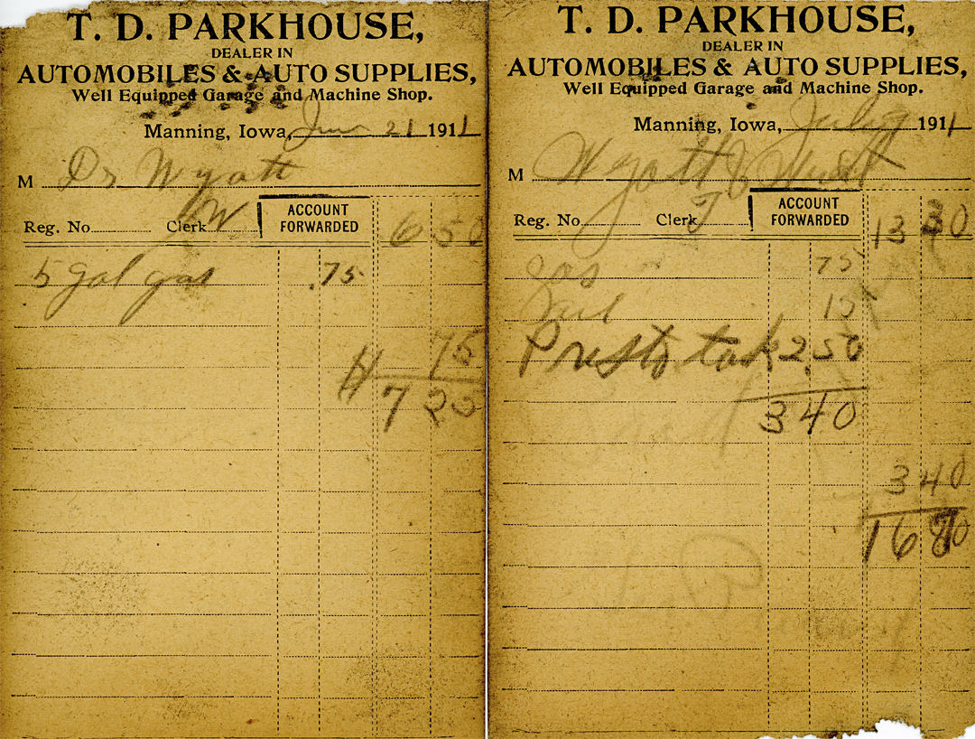 Bill to Orren W. and Merlin B. Wyatt for car repairs.