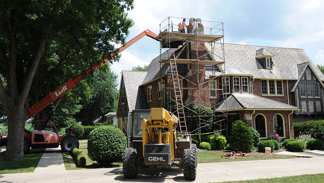 pictures of the chimney repair on the Ohde Funeral Home in 2013 so I can show people how things compare and contrast now to how they were done 100