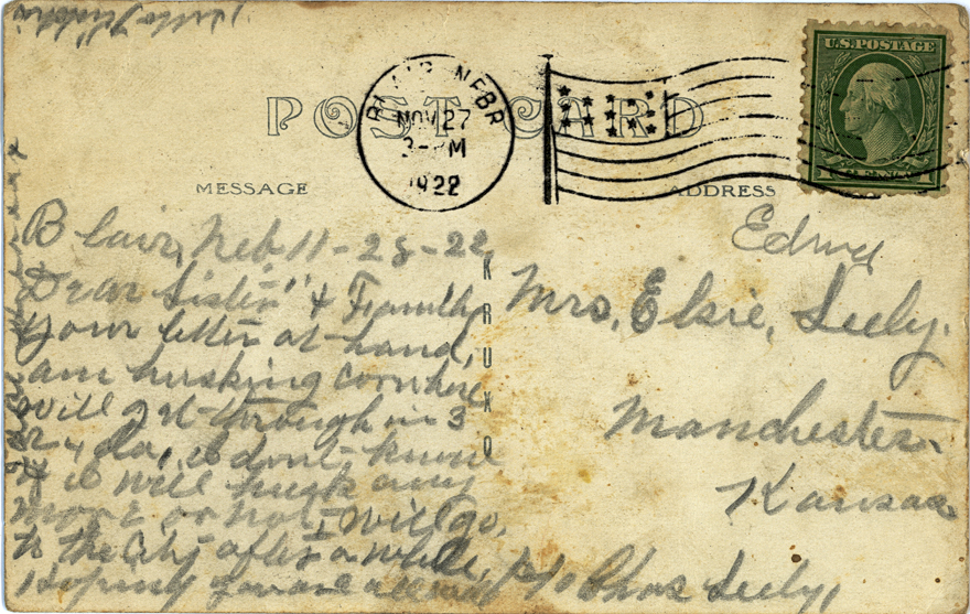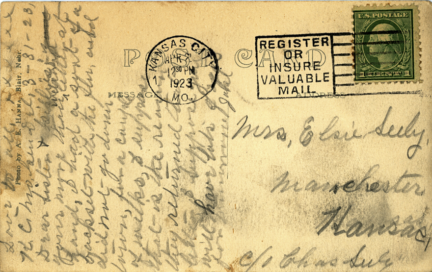 One was postmarked Blair, Nebraska, and the other Kansas City, Missouri, and they were sent to Manchester, Kansas.