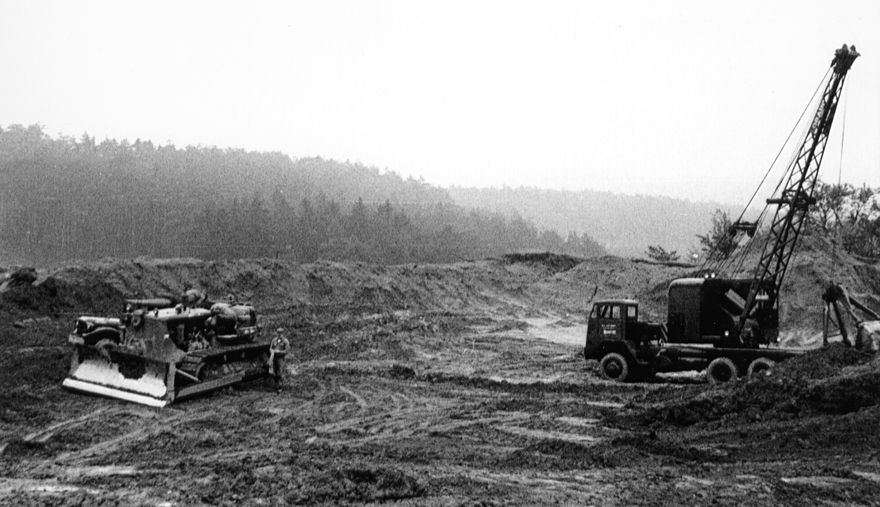 Creating an earthen berm around a fuel storage area near Sembach runway.