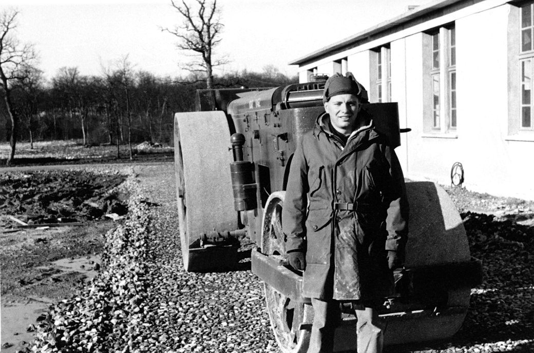 Pete with a heavy roller at Toul Rosiers Air Base in France shortly before Christmas 1954