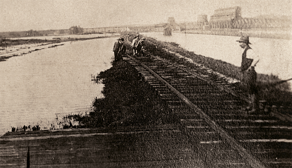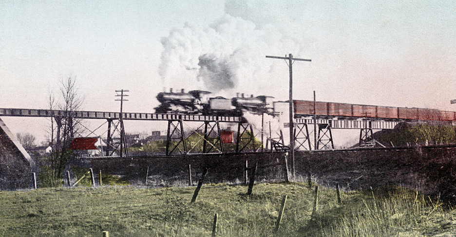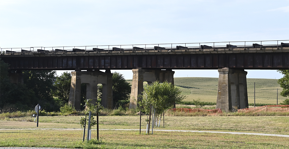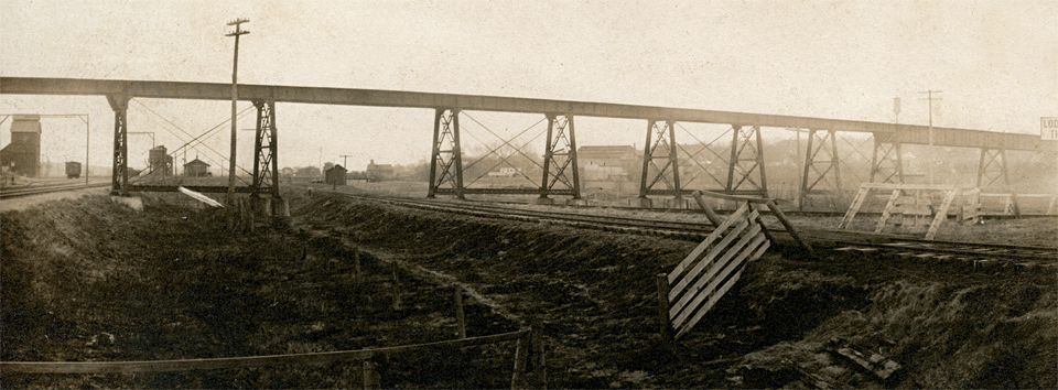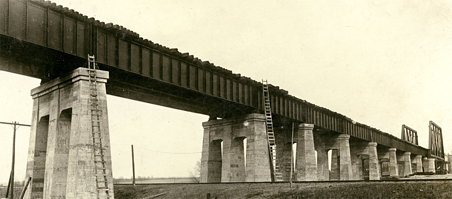 wanted to span the Northwestern in 1915, they had to build a bridge that would span that existing right-of-way with side tracks, and a trestle that would span the Nishnabotna Creek and the Great Western tracks.