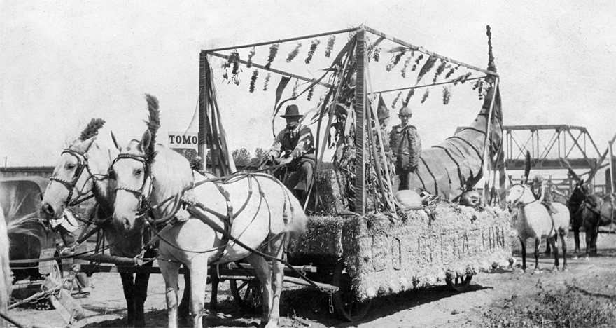 The caption on this pre-1915 picture postcard is "going through Manning 50 miles an hour."