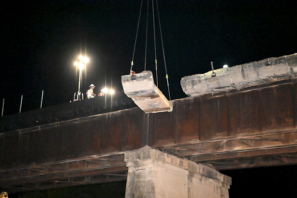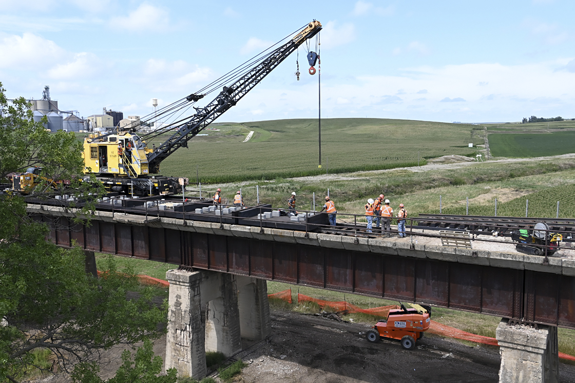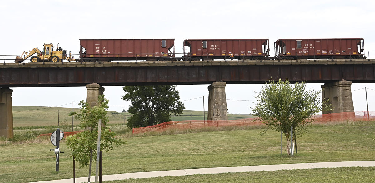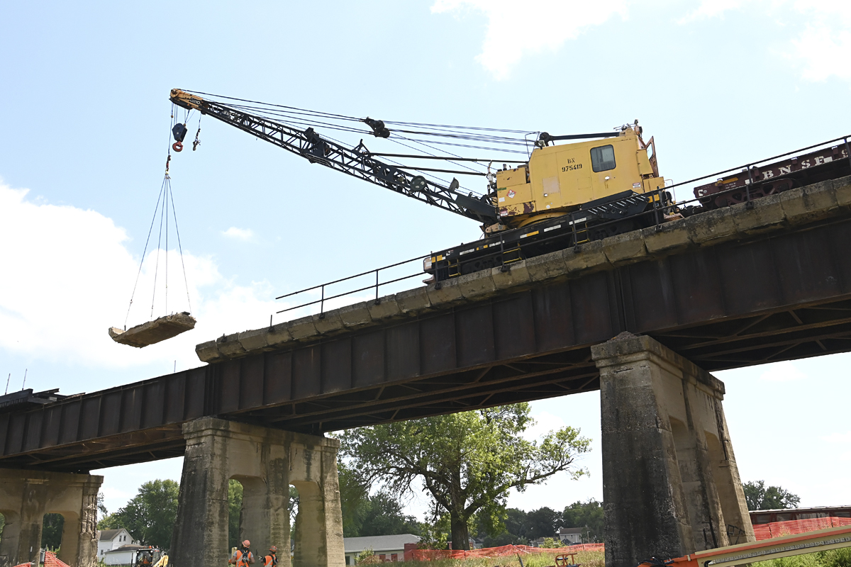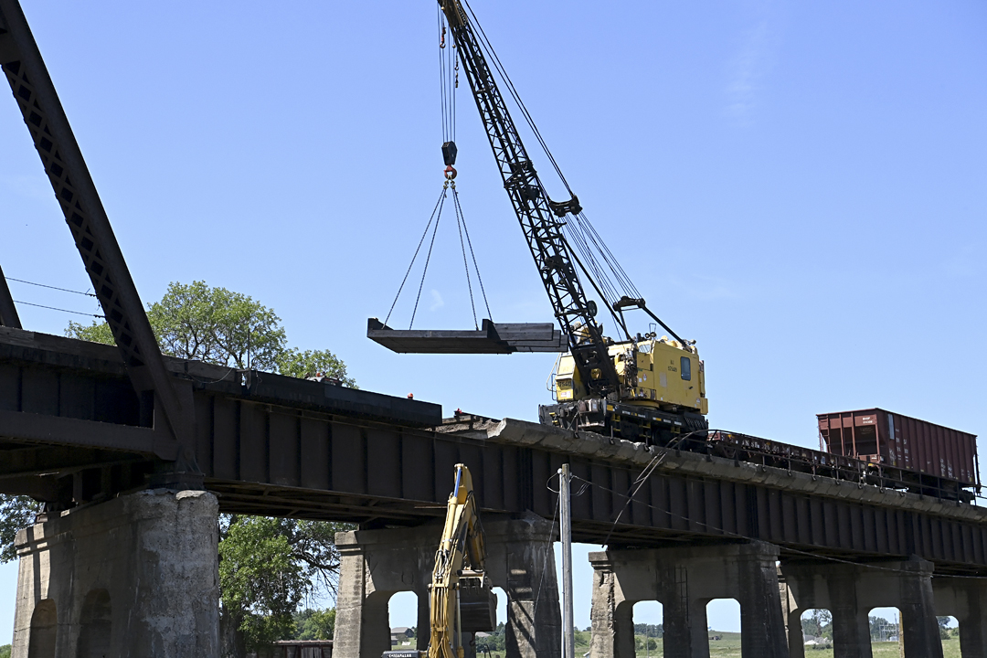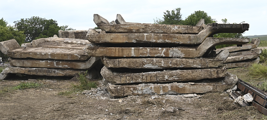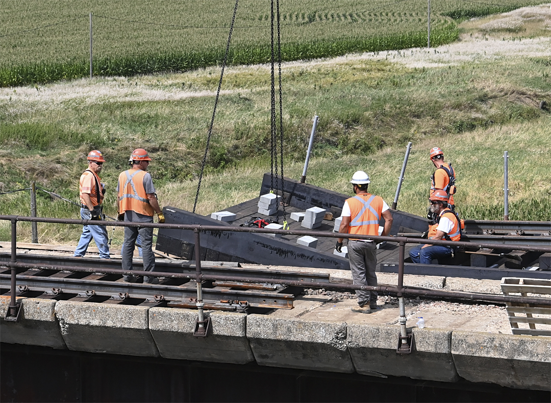 Now in 2022, the Burlington Northern is replacing the huge pre-cast concrete slabs (on the north half) that lie one next to each other on both north and south halves of the bridge.