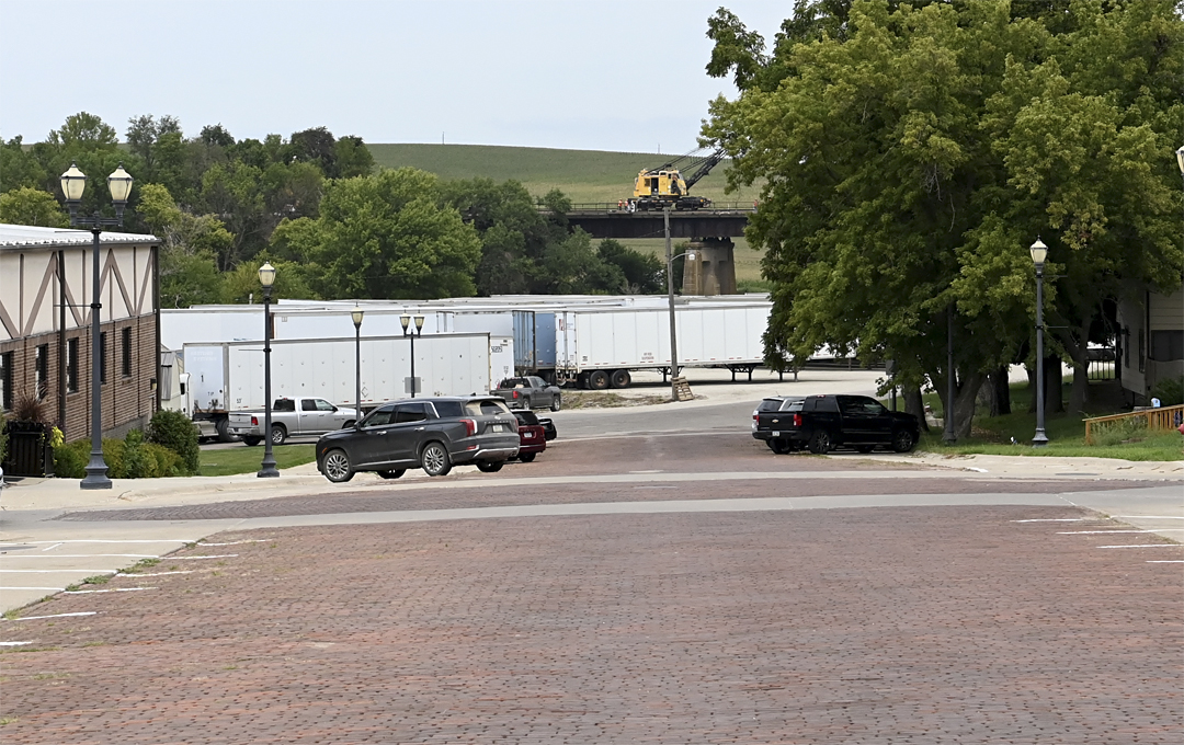 of this photo - looking south...the city wanted to extend Railroad Street west and under the trestle. This was an effort to limit truck and farm wagon traffic over the