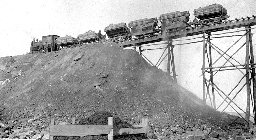 Now they not only had to dig deep cuts through the hills the had to fill in the valleys and creek bottoms. So they first built a temporary bridge built out of rough cut trees.