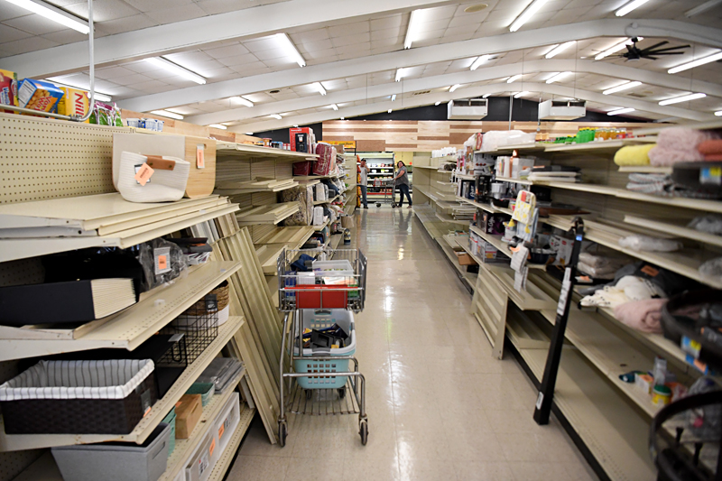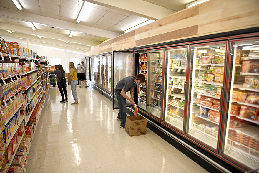 I see community members volunteering their time to help Ramsey's Market stock groceries on the shelves. YEAH, starting Saturday, we will have a grocery store in town again!!