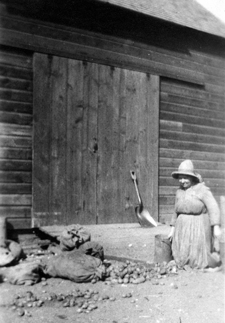Wilhelmine Ress working with her potatoes, brushing the soil off and sorting them October 1920