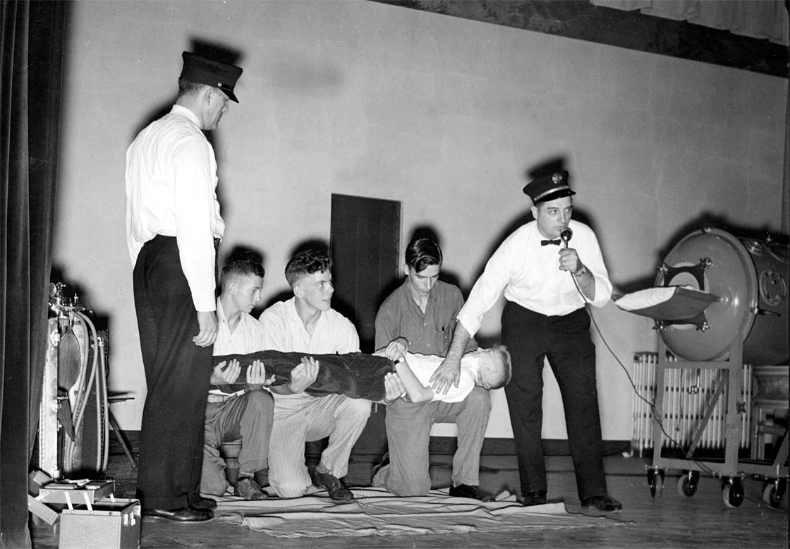 In an hour long demonstration, Captain Meister gave an interesting and worthwhile talk on how the iron lung was obtained in Omaha, the work of the rescue squad and told of many cases on which the men were called on to work.