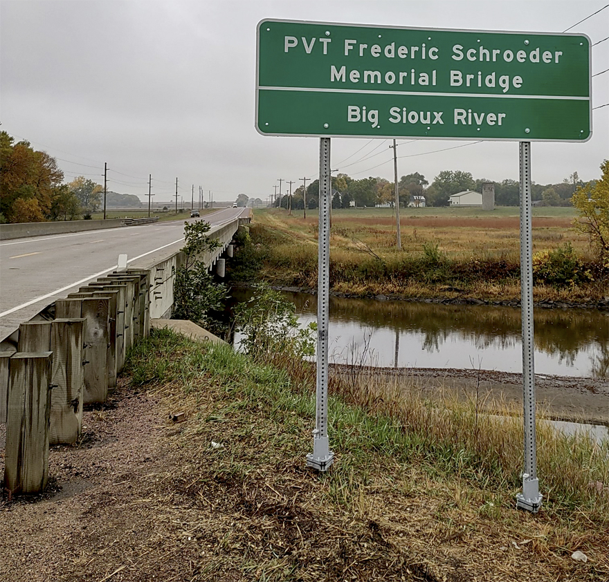 She had some pictures and other information she sent me and now an amazing event has occurred in South Dakota, where they are naming bridges in honor of Veterans who were KIA during war.