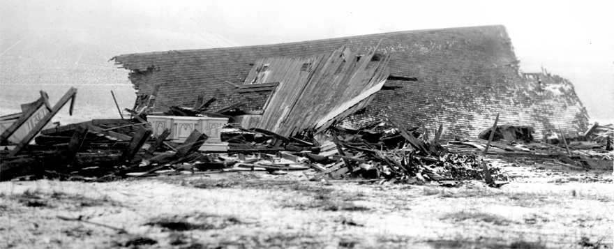 It was destroyed on March 24, 1913 by a tornado and the same structure was rebuilt by the fall of 1913.