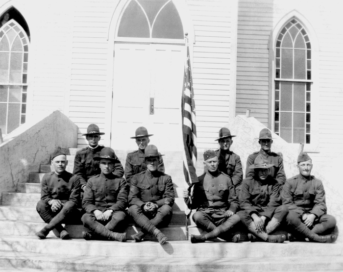 These WWI soldiers who attended Trinity posed on the steps in 1918.