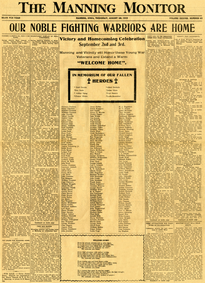 During WWI & WWII around 1000 Manning area citizens (many of whom were of German ancestry) served their country - 24 who paid the ultimate price with their lives defending this country.