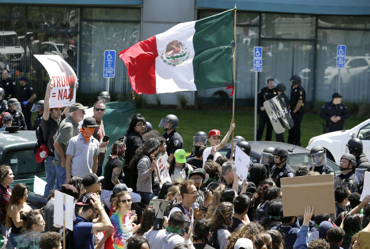 Foreign flags flying during a protest in the United States