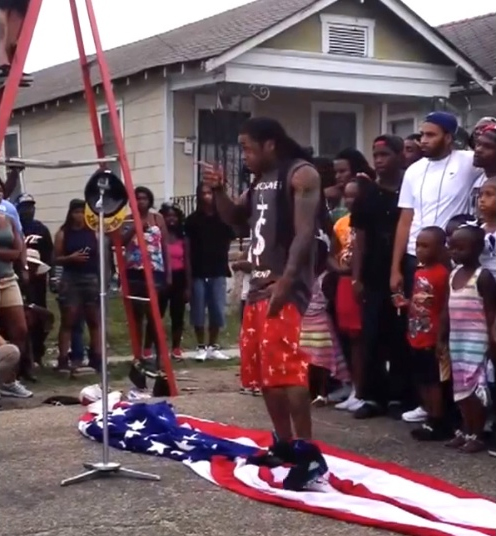 Stomping on the US flag during a protest
