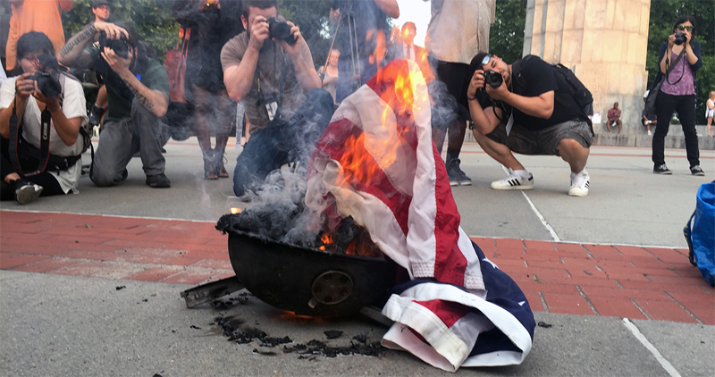 "Brave" photographers taking pictures of a burning US flag