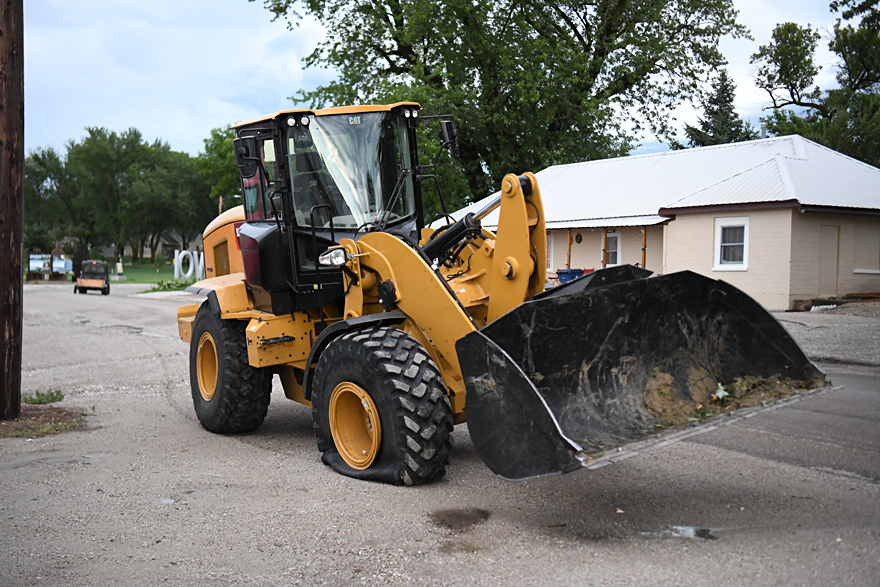 Of course the city's endloader gets a flat tire as they started clearing the streets of trees.