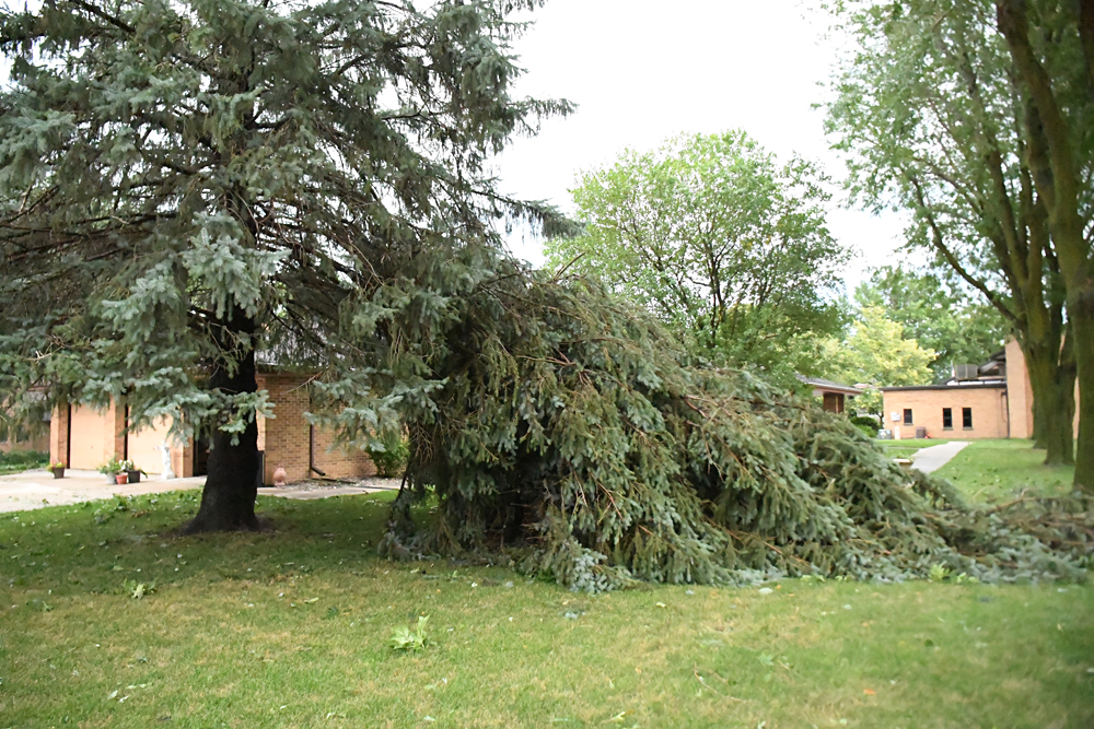 While I hear some people say we were spared the worst of this Iowa storm event in the Manning area, BUT it all depends on if your corn field is now flat or mostly flat, or if a big tree or tree branch fell on your house, or like with our school, where part of the roof was basically sucked up and crinkled over...