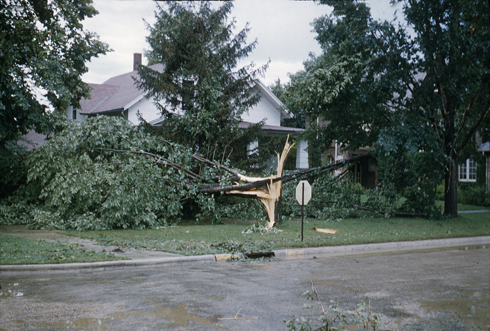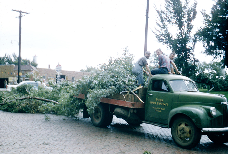 The worst storm would be the early morning of August 6, 1956. I was a whole 6 days old when straight-line winds out of the northwest blew through our farm and Manning.