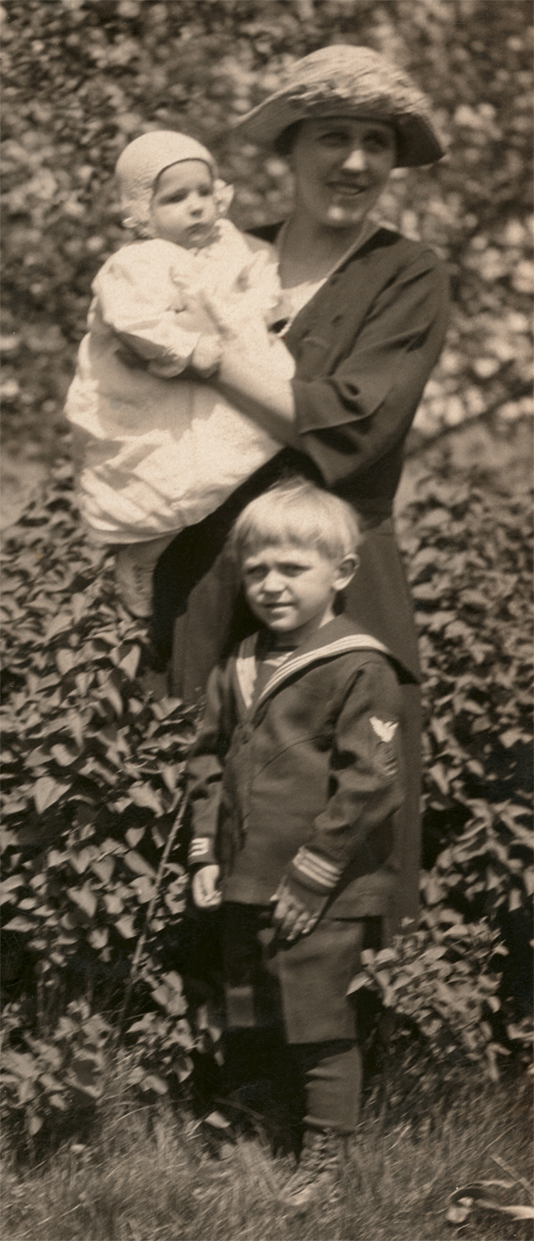 Ida Kusel holding Melvin, with Amos in his sailor suit.
