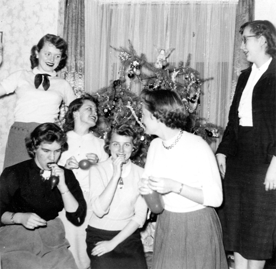 Christmas party: Lois Vennink, Carol Rowedder, Louise Polking