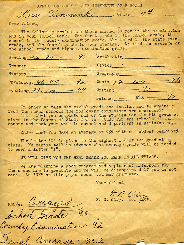 Middle: Wilber ?, Mildred Vennink, Lois Vennink (Kindergarten)