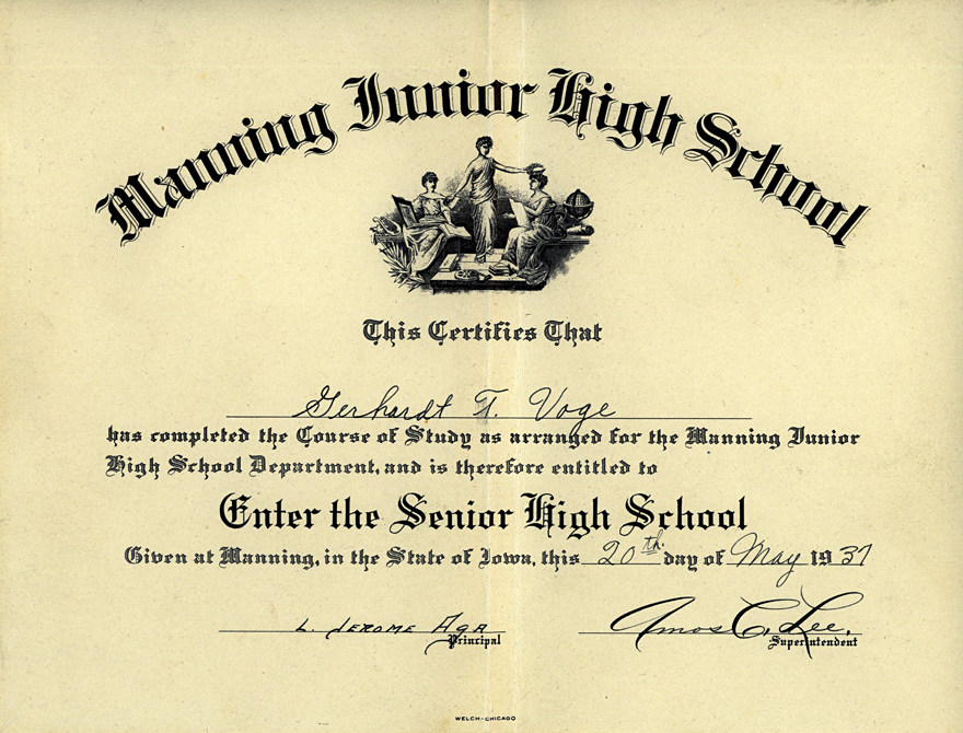 Junior High diploma 1937