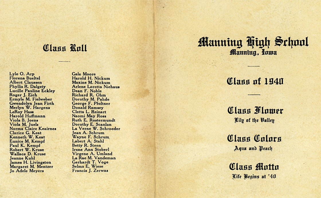 He and my dad, & Billie and my mother were good friends; dad graduating from Manning in 1938, Gerhardt in 1940, and mom in 1941,