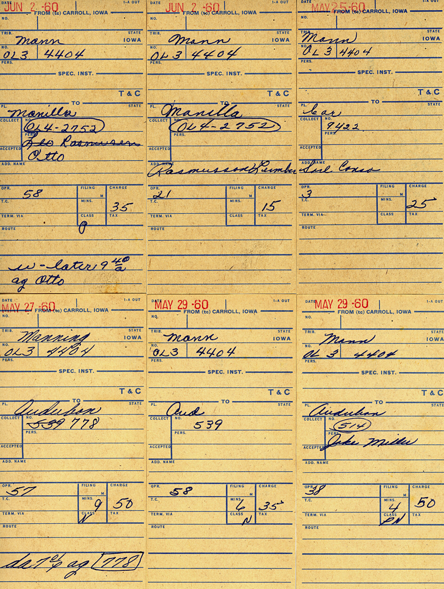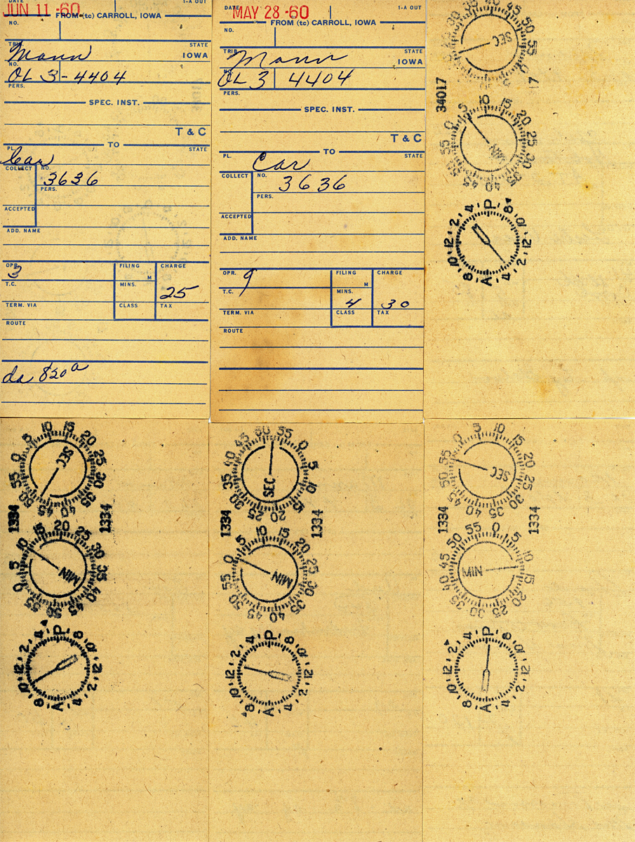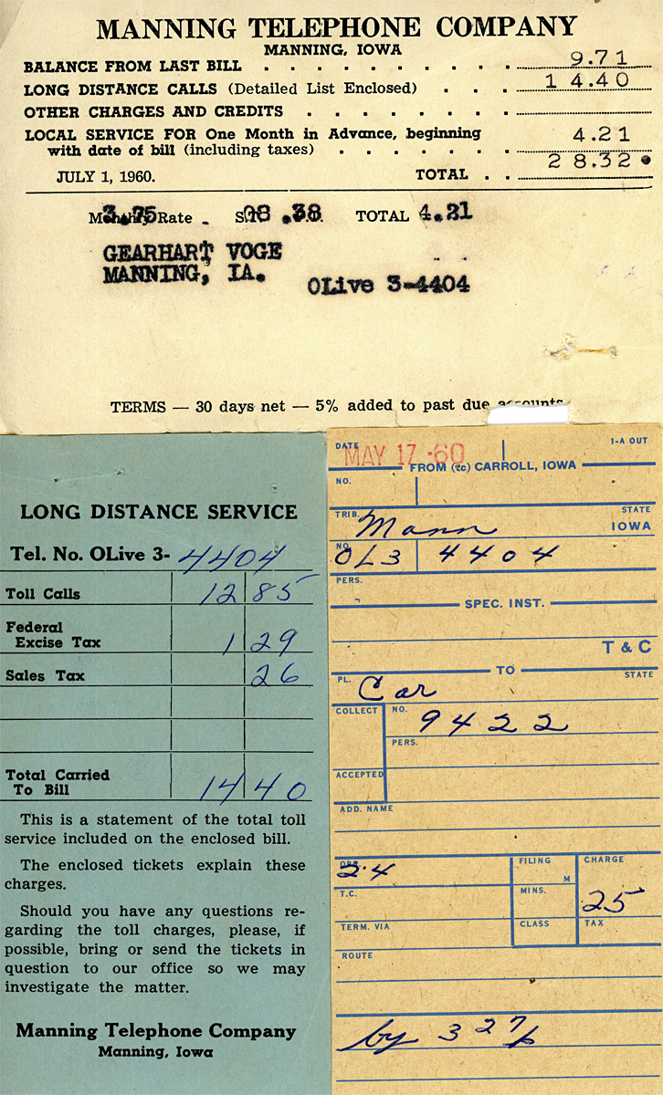 Manning Telephone bills for the Voge family during the months of May & June 1960