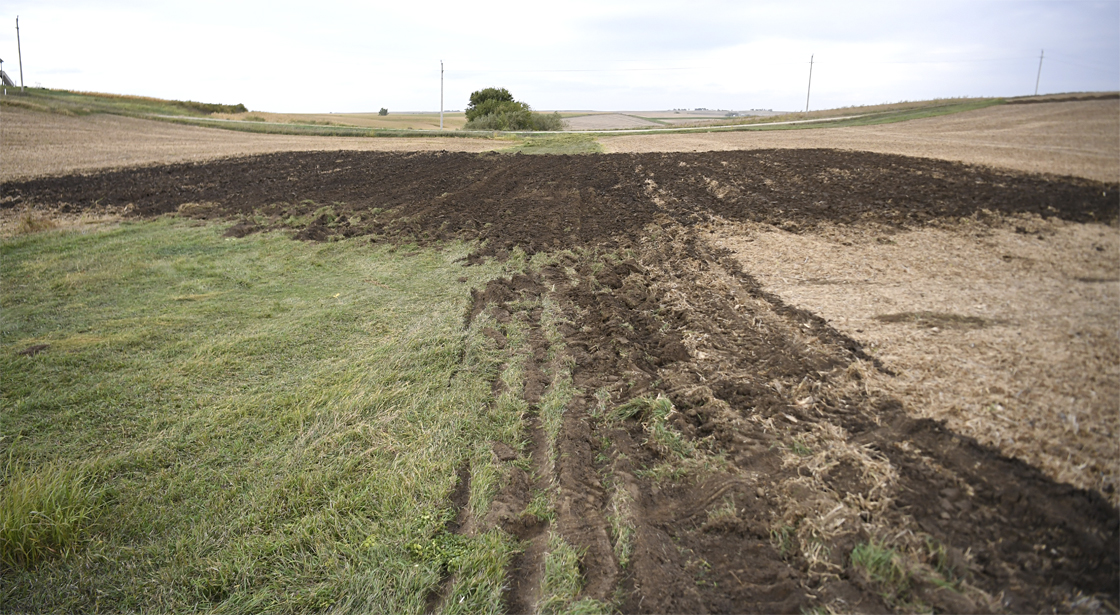 September 27, 2020, plowing out a section of waterway to haul back into the side hill.